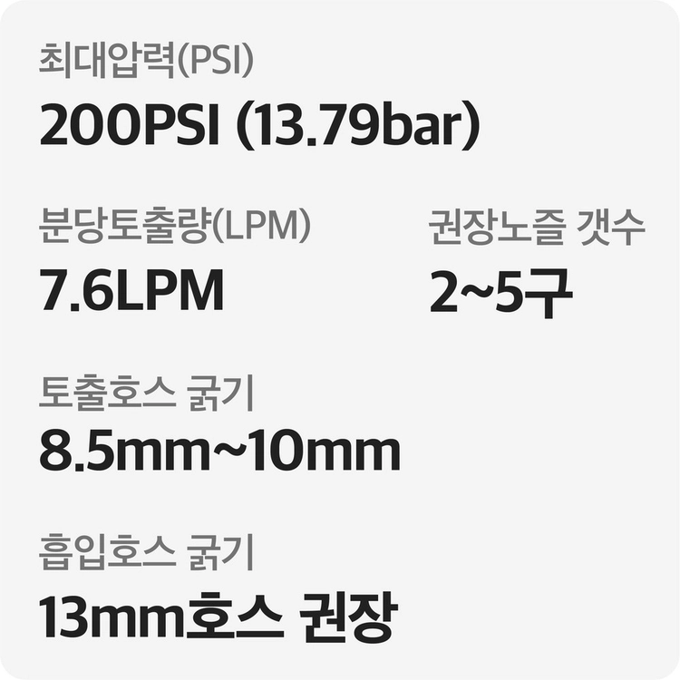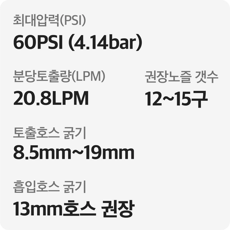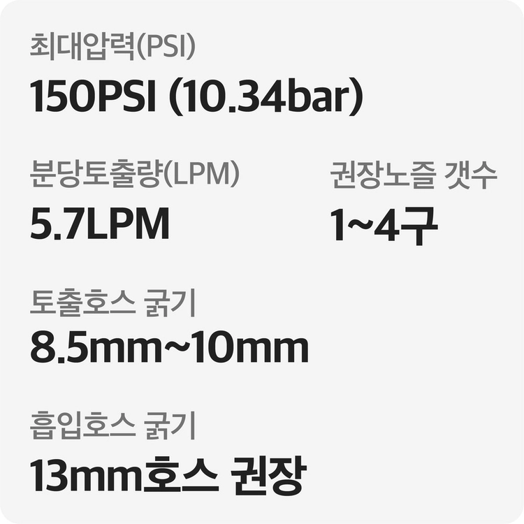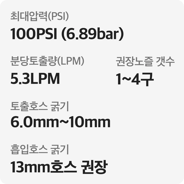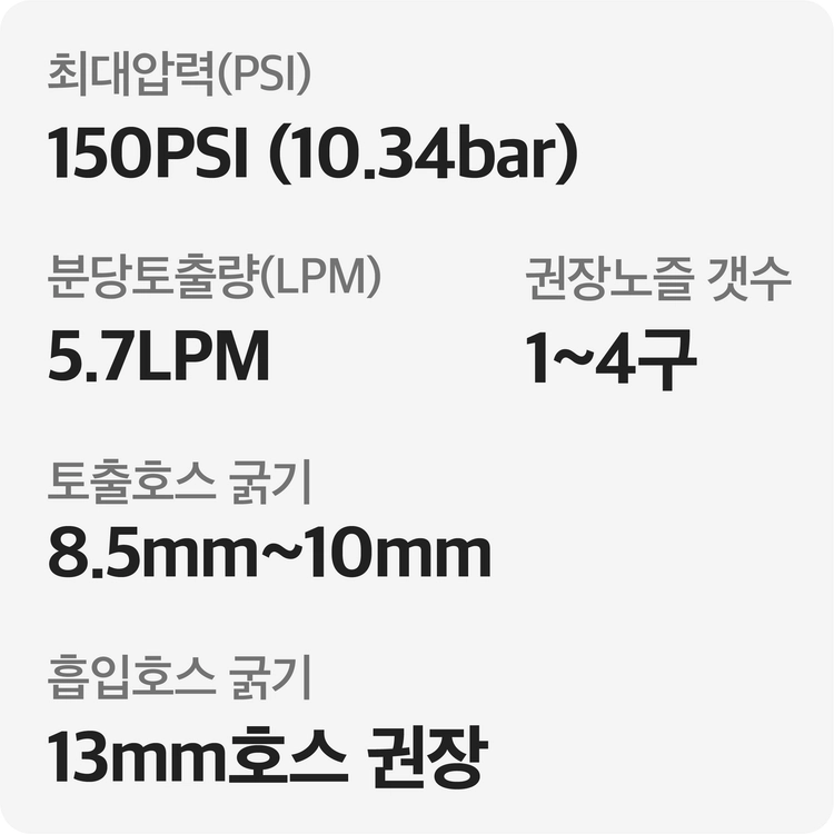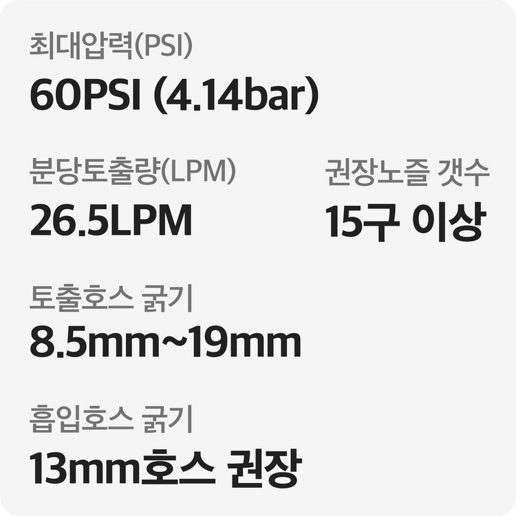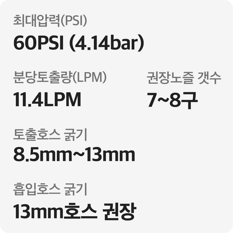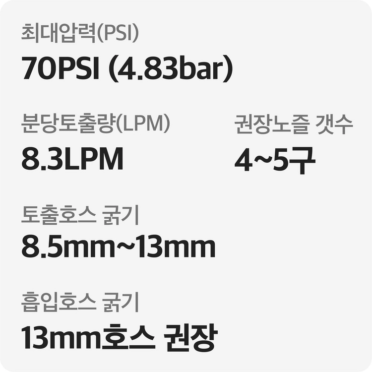 원하시는 압력과 토출량을 비교하여 선택해주세요.