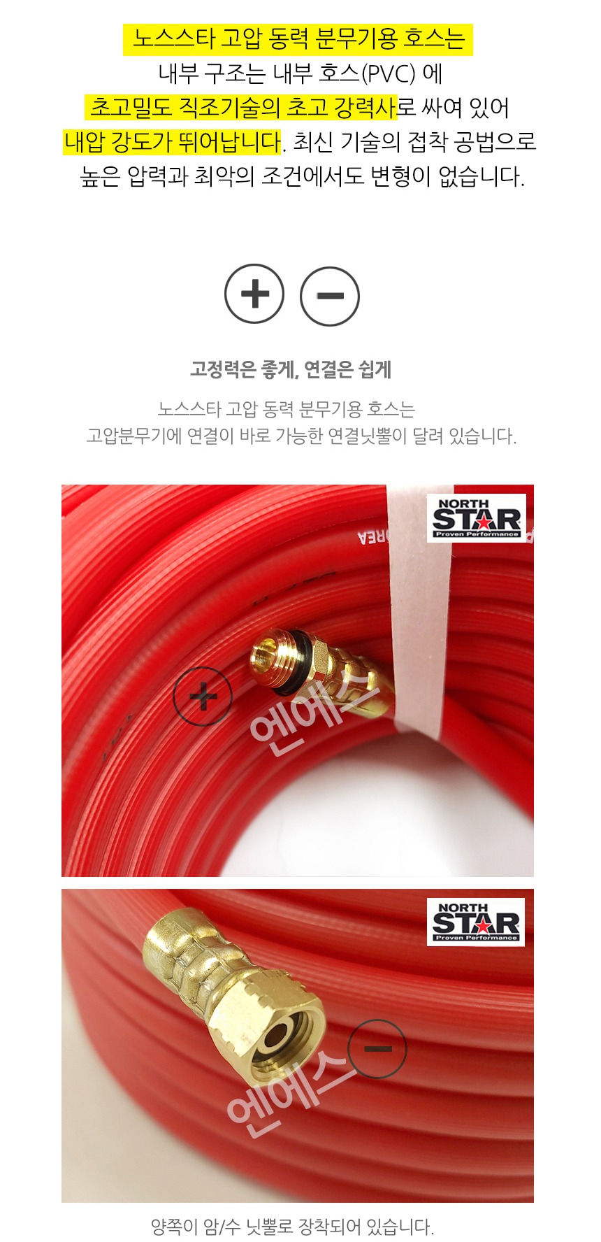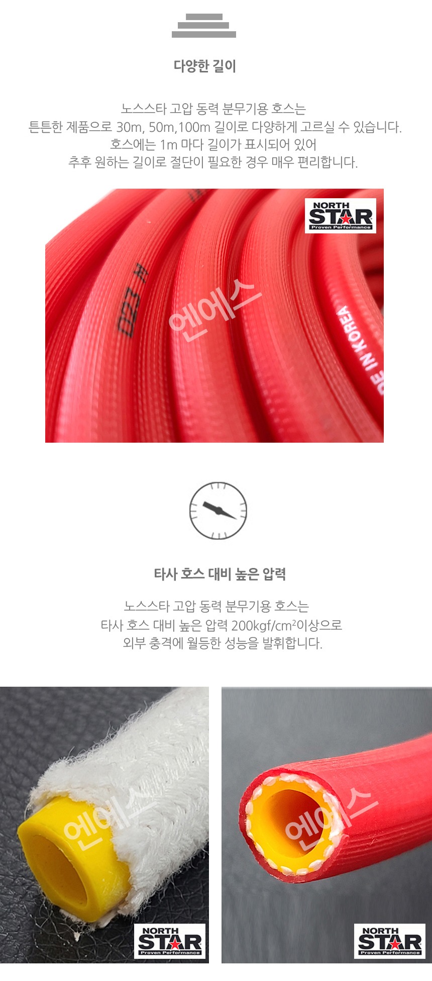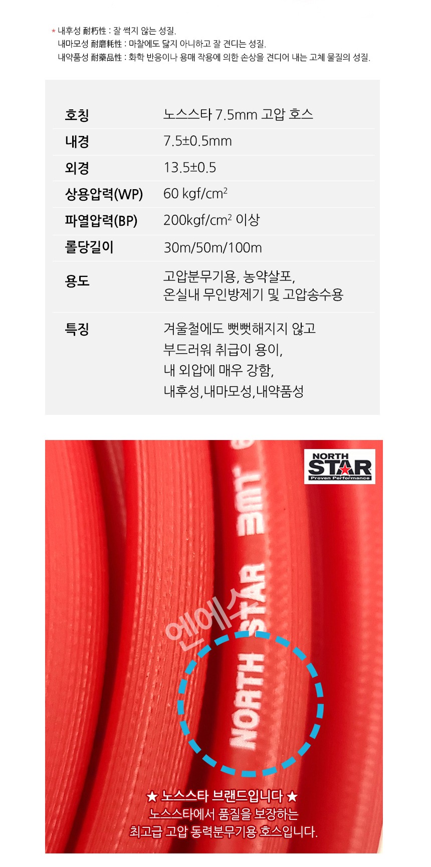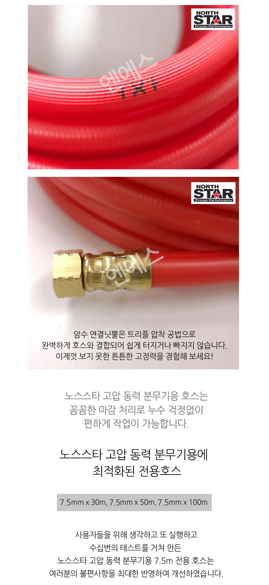 노스스타에서 품질을 보장하는 고압 동력분무기용 호스입니다.