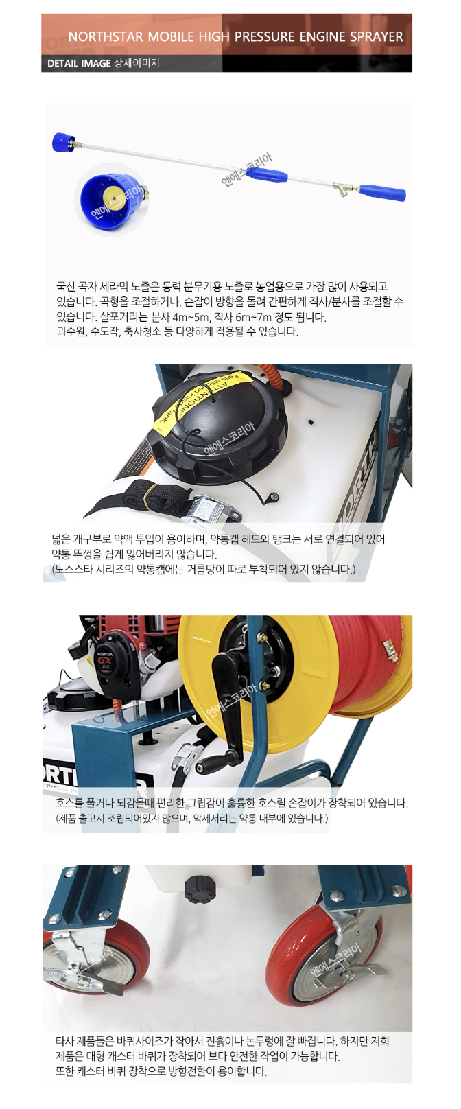 NS-60HG 노스스타 60L 엔진 분무기 혼다 GX35 방역소독 밀차식 고압호스 농약살포기