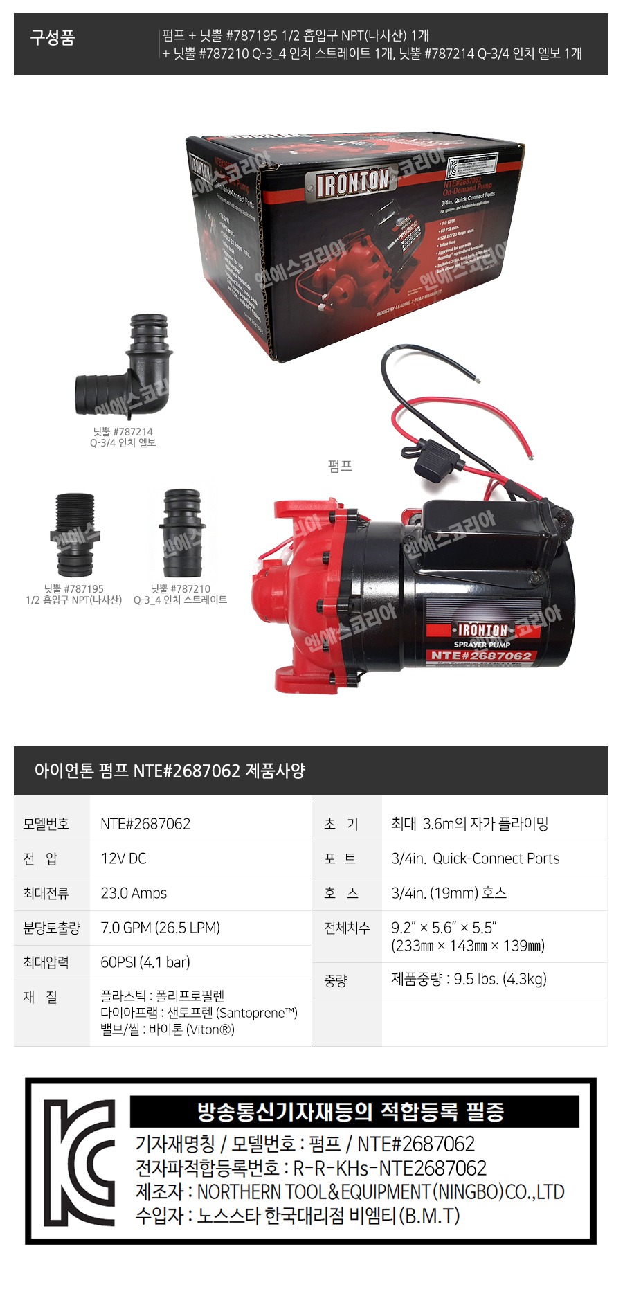 12V #2687062 아이언톤 다이아프램 펌프 자동DC펌프