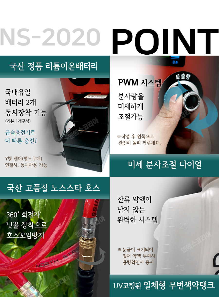 노스스타 고성능 충전분무기 NS-2020/2203 초경량펌프 장착