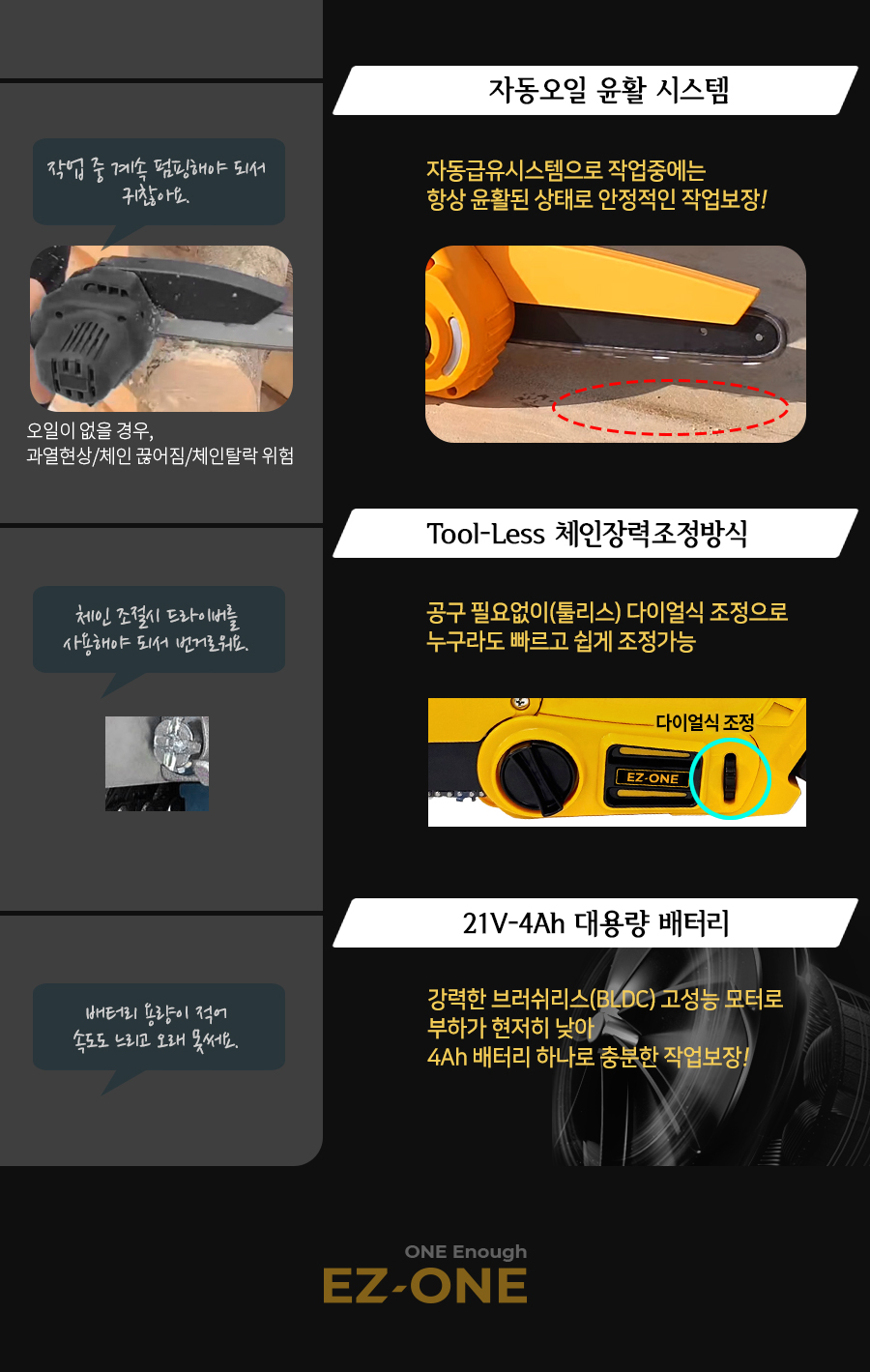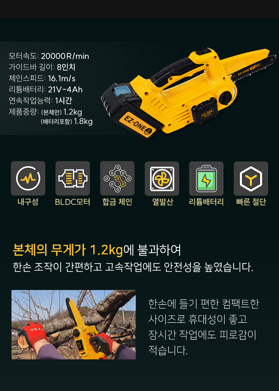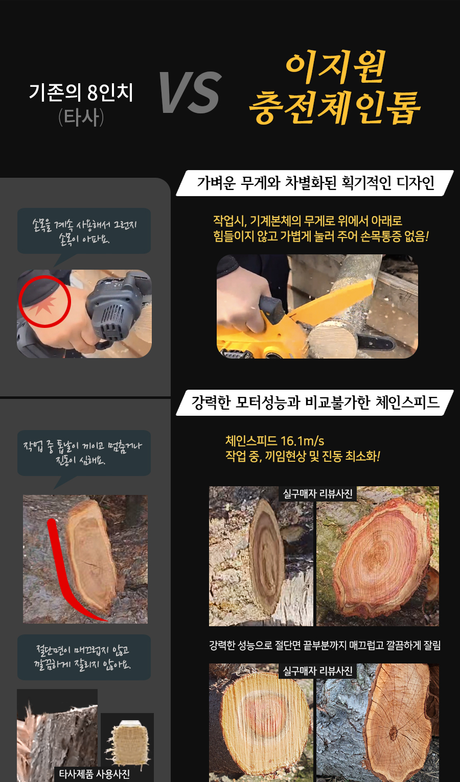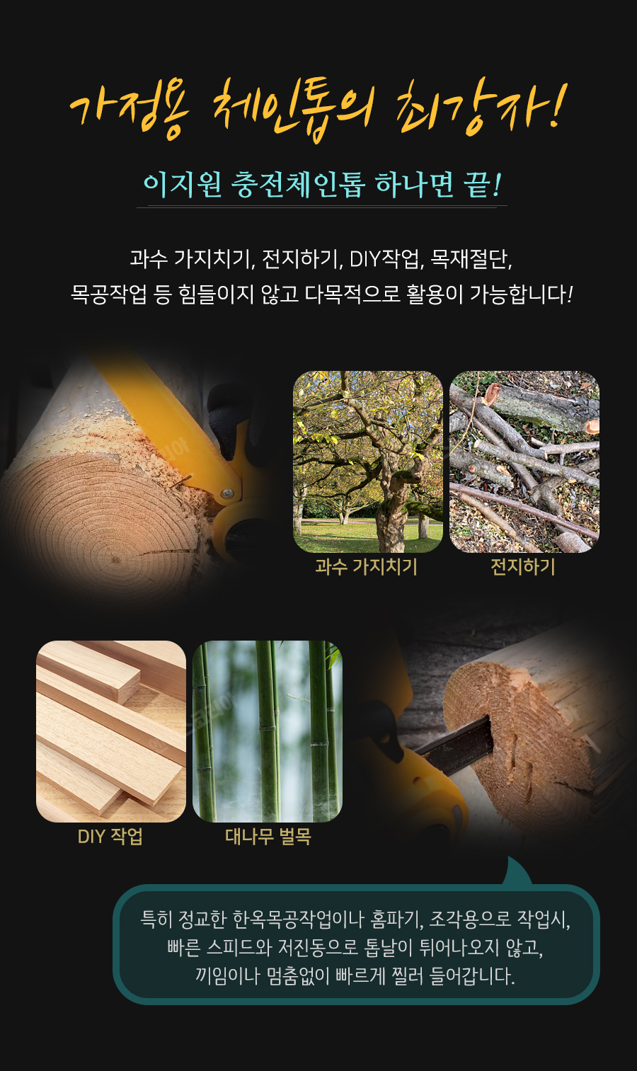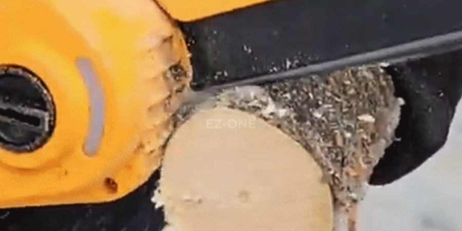 [참고] 이지원 충전체인톱 'NSK208CS' 통나무 찔러서 구멍내기&홈파내기