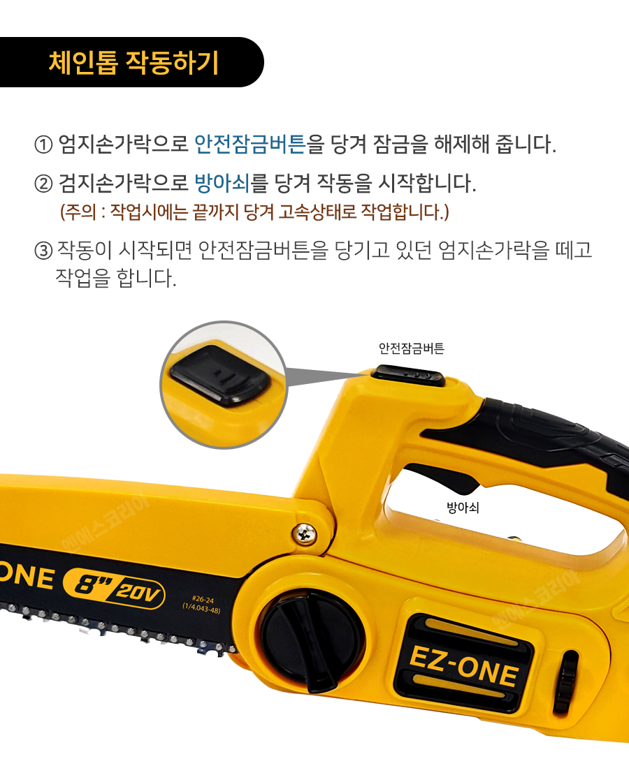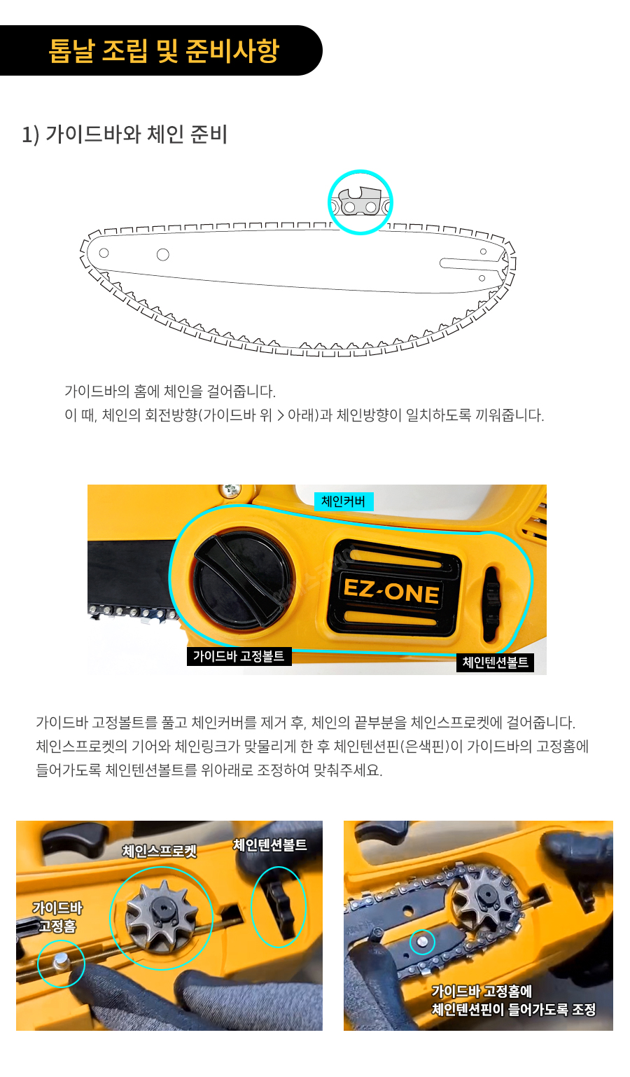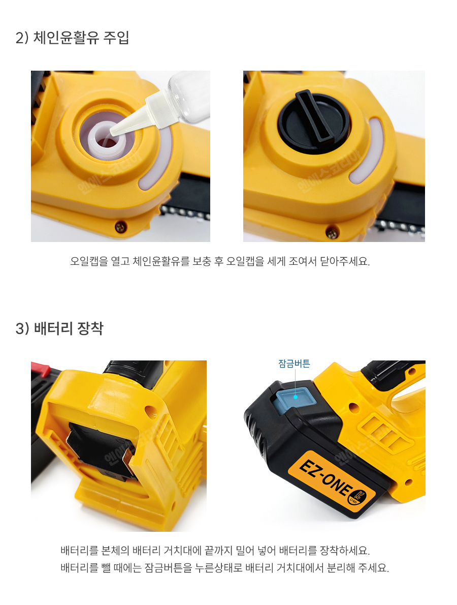 [참고] 충전톱 NSK208CS 가이드바/체인 장착방법