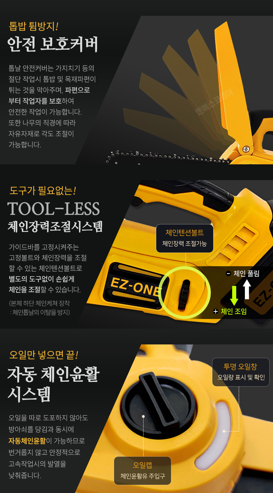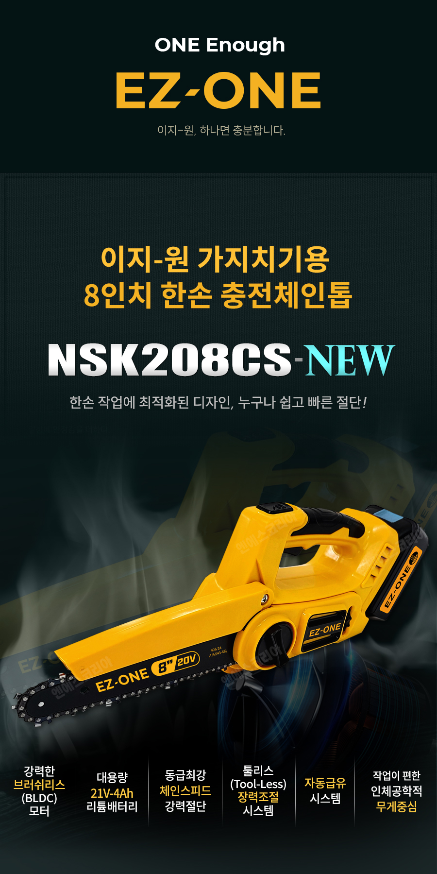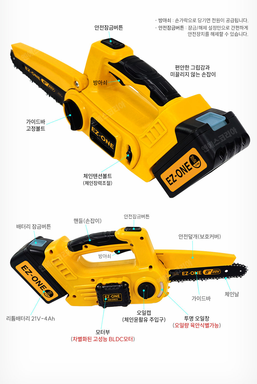 [참고] 충전톱 NSK208CS 가이드바/체인 장착방법