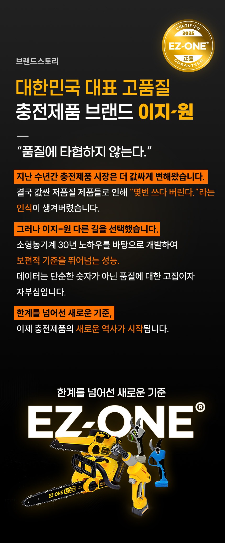장담하건대 특허 이지-원 충전톱을 써보시면 깜짝 놀라실 거예요.